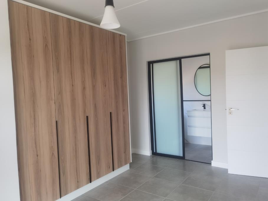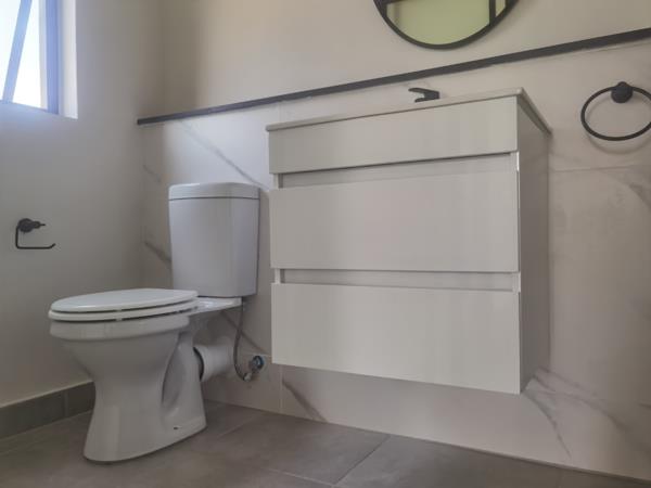 Discover contemporary living in this stylish 56 sqm apartment, perfectly situated within a sought-after security estate in Waterfall, Midrand. Boasting a modern design and sleek finishes throughout, this residence offers an ideal blend of comfort and convenience for discerning individuals or couples. The open-plan layout seamlessly connects the living area to a state-of-the-art kitchen. This culinary space features elegant two-tone cabinetry, marble-effect countertops, and integrated appliances including a fridge, dishwasher, oven, and washing machine. The lounge area is bathed in natural light, thanks to large sliding glass doors that open onto a private balcony, providing an inviting outdoor extension to your living space. The apartment comprises a comfortable bedroom, complete with a modern built-in wardrobe offering ample storage. An en-suite bathroom, accessible via a stylish frosted glass sliding door, showcases contemporary fixtures, a wall-mounted vanity, and chic marble-look wall tiles, ensuring a fresh and clean aesthetic. Residents benefit from a host of lifestyle amenities within the complex, including a communal swimming pool and a well-equipped gym. The property also features a private garden area and paved sections. Security is paramount, with 24-hour security, electric fencing, an access gate, and security gates providing peace of mind in this secure estate. Located in this vibrant precinct, the apartment offers excellent connectivity and access to local amenities, making it a prime choice for modern urban living.