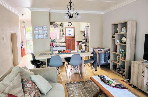 Upstairs, the home offers three well-sized bedrooms with good cupboard space and two bathrooms. The main bedroom is en-suite, while the second bathroom serves the remaining bedrooms and features a bathtub.