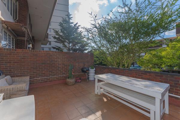 A large balcony overlooks the back gardens fitted with built in braais . Perfect for social gatherings