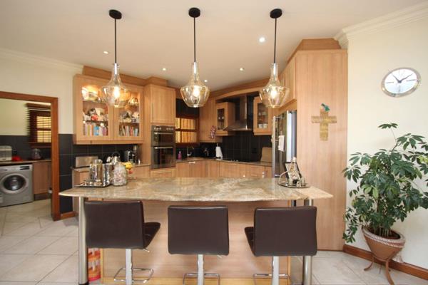 Walk into an immediate eye-catching atmosphere when you are met with the spacious lounge. Next to the lounge, you will find the dining room area that can directly lead outside to the garden through glass sliding doors. Further down, you will walk into a stunning open-plan kitchen with granite counters, and an entertainment room with a built-in bar area. The kitchen also leads to a laundry room.