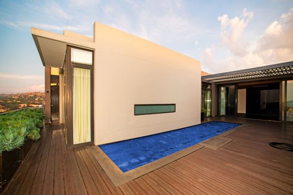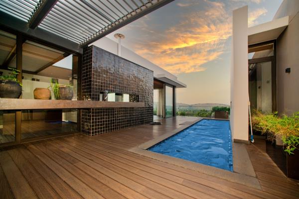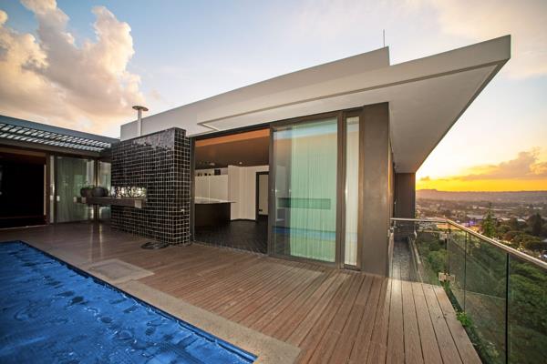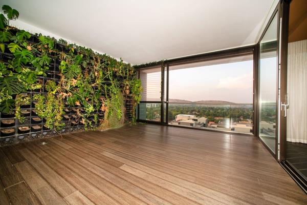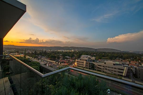 Located in the prestigious Bedford Square, this north and east-facing apartment affords breathtaking views over Johannesburg. The open-plan living room, dining room, and kitchen are perfect for entertaining and lead out to the deck pool with a built-in gas braai and stone island. The stylish kitchen features a glass hob, ample cupboard space, built-in appliances, and outstanding views of Joburg.