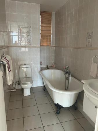 The spacious bedrooms come with built-in cupboards, and the main bedroom includes an en-suite bathroom featuring a bathtub with modern finishes. The second bathroom is equipped with a shower.