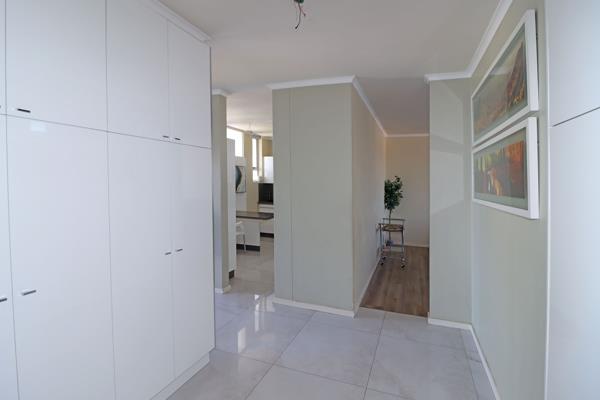 This apartment measures 139sqm and is light and sunny, It has been renovated to a high standard to allow for easy day to day living. Comprising well appointed modern kitchen with soft touch cupboards, room for a double fridge and room for 2 appliances. The lounge/soning room is spacious and opens to balcony. 3 spacious bedrooms with built in cupboards, 2 with en suite bathrooms. One bathroom is wheelchair friendly. It has been fitted with additional cupboards and has an inverter.