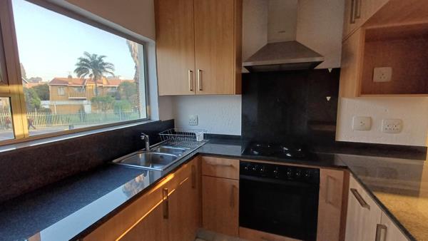 Lock-up and Go! 65sqm. Upstairs unit in secure complex in the heart of Bedfordview. One bedroom with walk-in closet and own en-suite. Newly painted. Bathroom has a shower, toilet and basin. Lounge and dining area off the kitchen leads to sliding doors and the balcony. The balcony has a tractable wash line and space for a braai. Lovely views over the complex. The kitchen is a Chefs dream consisting of a new electric hob, undercounter oven and a cooker hood. All the cupboards have been replaced with modern units. Space for a washing machine, tumble dryer and dishwasher. Space has been allocated for a microwave. There is a glasswooden breakfast nook plus 2 bar stools. Most of the windows have wooden blinds and a solid front-door. The complex offers 247 security, perimeter walling and electric fencing, a swimming pool and a tennis court. This complex is 5 minutes from Bedford Centre and 10 minutes from Eastgate and Park Meadow malls. Close to all major arterials.