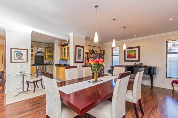 Three spacious bedrooms and 2 bathrooms main en-suite, guest loo, magnificent open-plan kitchen, dining and living area which flow effortlessly to the covered balcony with built-in braai.