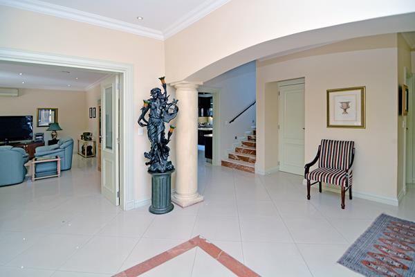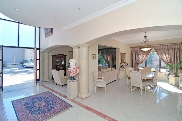 Positioned in a secure boomed enclave of Bedfordview with a 24/7 guard. Grandiose and immaculate in every way with the finest finishes from the double volume entrance through to the sophisticated lounge, classic dining room, executive fitted study. A master crafted eat-in kitchen opens onto the family room and lavish entertainers patio overlooking the low maintenance garden with heated pool.