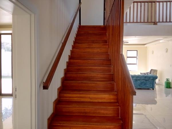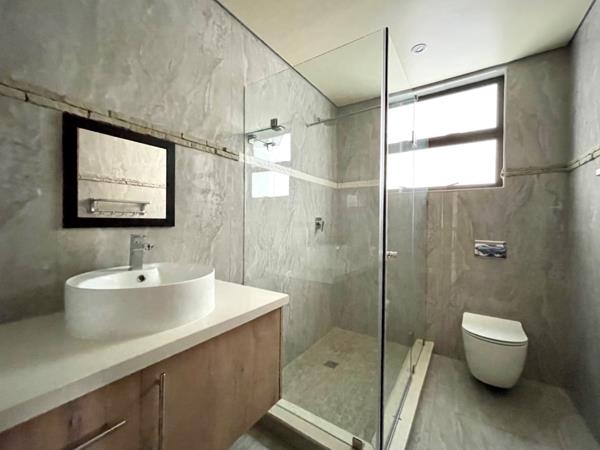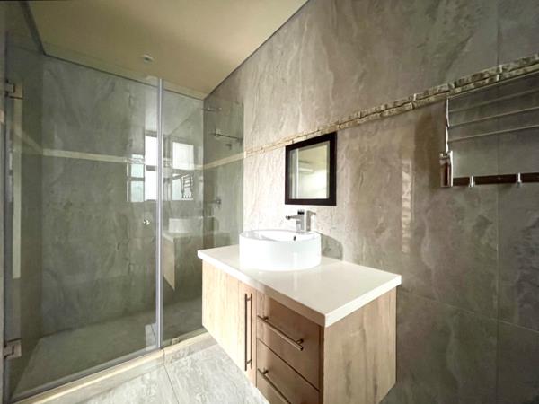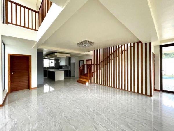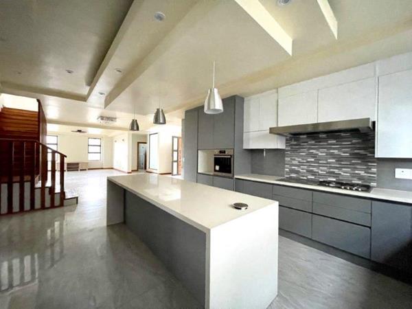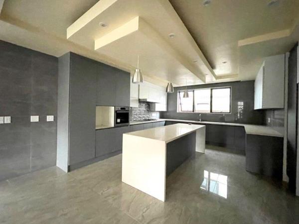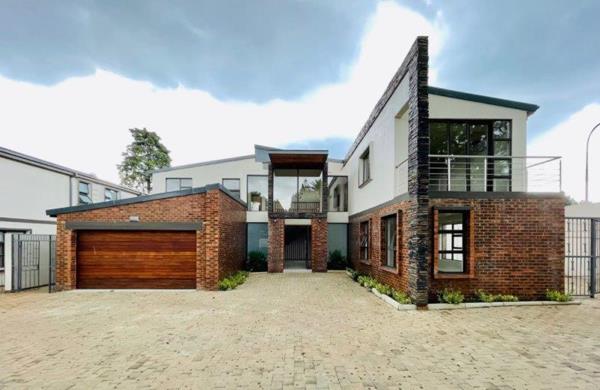 An exclusive cluster complex in a cul-de-sac offering state-of-the-art finishes. Double volume entrance hall with featured lighting. No transfer duty costs! Big open-plan lounge and dining area leading to massive kitchen. Kitchen comprises: Whirlpool electric oven and gas hob, Quartz counter tops, prep bowl, centre island and an Eye-level oven. Separate scullery/laundry with space for 3 appliances. Separate formal lounge with stackable doors leading to stunning covered patio with a built-in braai. Guest bedroom with an en-suite, air-con, parquet flooring and built-in cupboards. Large open-plan pyjama lounge/playroom. 4 Bedrooms leading off the pyjama lounge, all with en-suite bathrooms and all boasting a balcony, parquet flooring and an air-conditioning unit. Staff accommodation with bathroom and kitchen. Low-maintenance, garden with swimming pool. Double garage with entrance to the home. Excellent auto gate security and within a cul-de-sac.