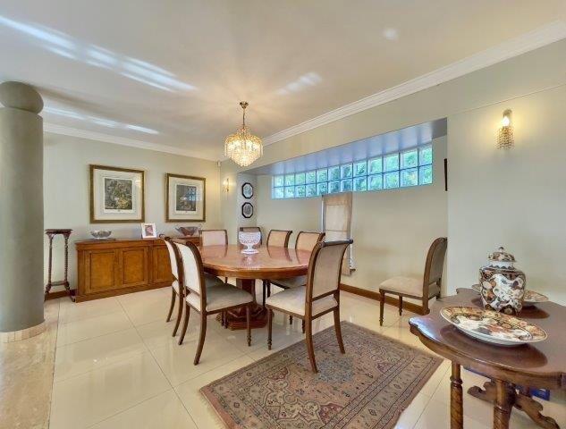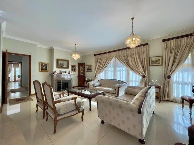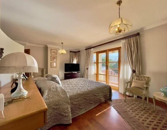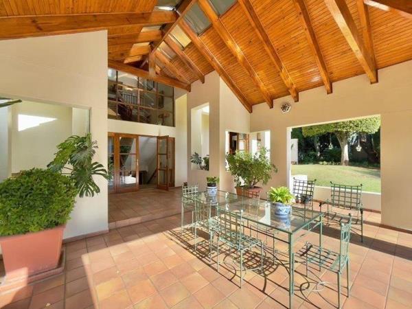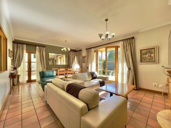 A home with Mediterranean Flair in a boomed off road. This double - story home embodies an understated easy elegance and a warm family ambiance. 3 Lavish receptions with open fireplaces leading to a large entertainers patio, built in braai, overlooking the pool in an immaculate garden setting. Traditional family kitchen with gas hob and separate scullery area. The free flowing staircase leads to a master bedroom with en-suite bathroom and dressing room, plus 2 sunny bedrooms, 2 bathrooms, study/ 4th bedroom. Basement wine cellar, double staff accommodation, outside laundry, 2 garages, 10 car guest parking. Private and immaculate family home.