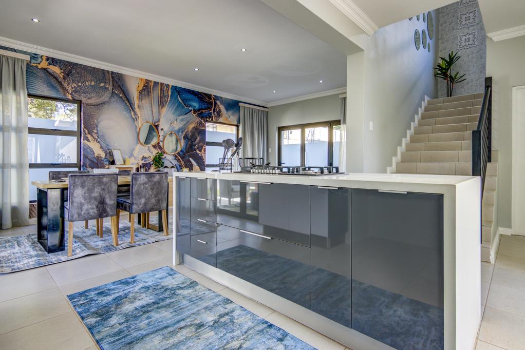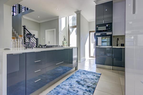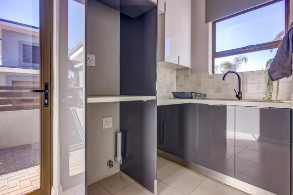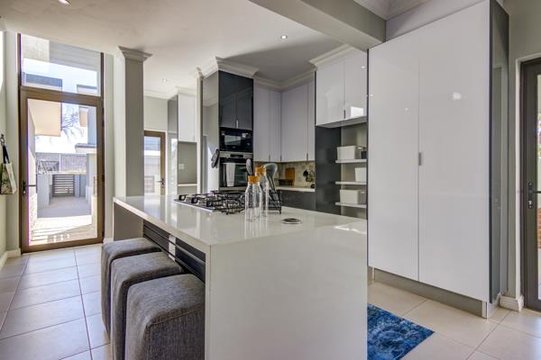 Enough garden space for 2 small pets or place for little ones to play while you watch from the comfort of your covered patio with built in braai and prep bowl. Stunning kitchen boasts Quartz center island for cooking and al fresco dining. Ample built in cupboards in the kitchen are complimented by a separate scullery with space for 2 appliances, additional BIC''s and access to the courtyard.
