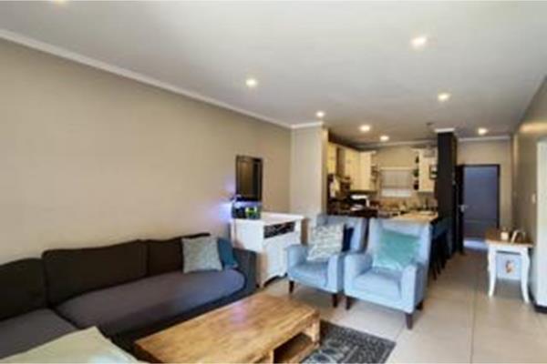 The spacious lounge and dining area flow seamlessly out to a private patio with built-in braai, creating the perfect indoor-outdoor setting for relaxing evenings or hosting friends and family.