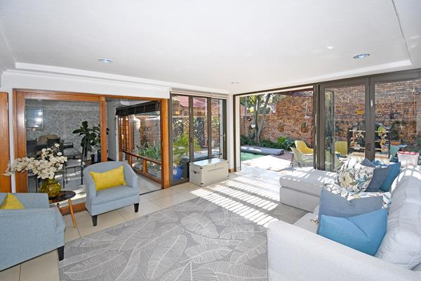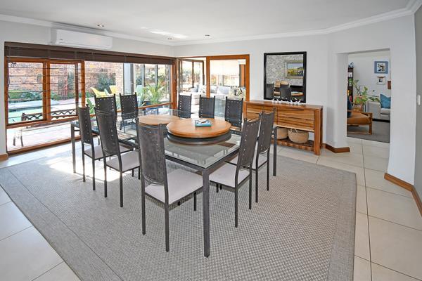 The expansive open-plan layout features four versatile reception areas that flow effortlessly into a private garden oasis with a heated swimming pool. These include a formal lounge, an entertainment room with a built-in bar, an open-plan dining area, a cozy family room, and an enclosed patioperfect for all-season gatherings.