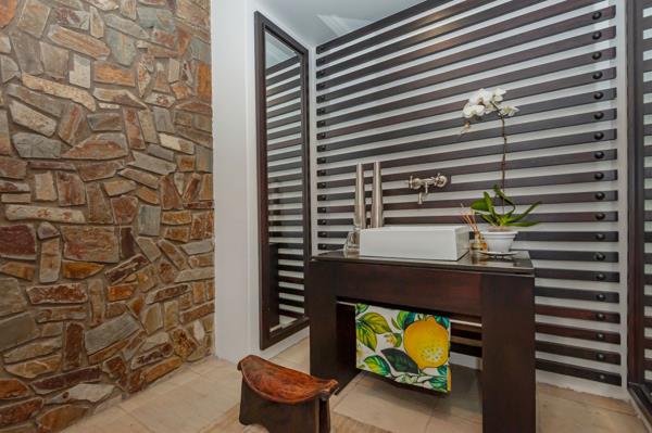 A custom-designed, temperature-controlled wine cellar extends the entertaining space and opens out to a serene garden nook with a water featurea secluded space designed to delight wine connoisseurs and guests alike.