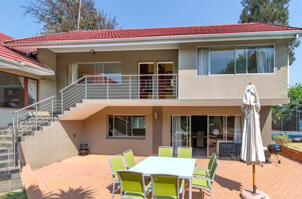 Solid family home in Essexwold suitable for 4 families with own private areas or rent out the cottages, or garden villa rooms or manage it as an INCOME PRODUCING GUEST HOUSE on AirBNB or booking.com with a maximum of 18 guests per night. = R 9,000-00 per night if fully occupied or R112500,00 if 50% occupied per 25day / month. The property consists of 8 bedrooms (potential to add 9th with en-suite) 8 bathrooms (7 en-suite) 2 kitchens, 3 dining rooms, 4 lounges (including bar area, 1 library ) 2 playrooms, 1 entertainment venue with bar and wine cellar, double garage, single garage, covered carport for 3 cars, open parking for 10 cars, 1 indoor and outdoor sparkling pool, 1 tennis court/Basketball court.
