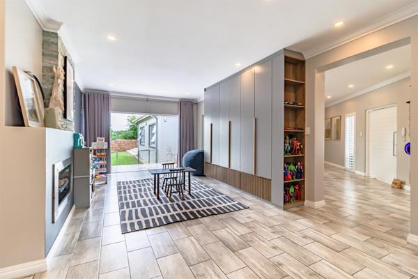 The gourmet kitchen is fitted with a gas stove and flows effortlessly into the living and dining spaces, where a gas fireplace adds warmth and ambiance. Additional lifestyle spaces include a playroom/study, staff accommodation, and a double garage.