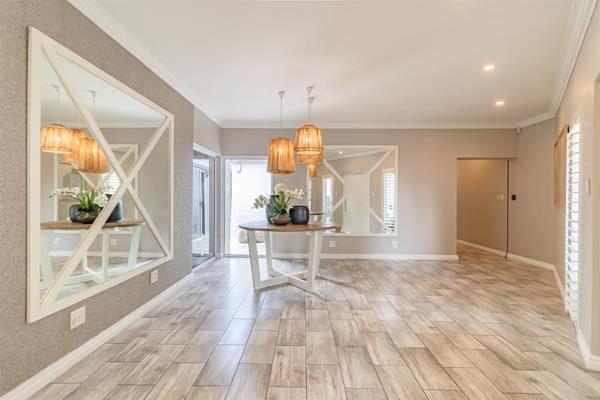 Energy efficiency is front and centre with 16 solar panels, a 5kVA inverter, and 10kW batteries, ensuring uninterrupted living and reduced monthly costs. Prepaid electricity further enhances convenience. American shutters add a stylish touch, while advanced security features provide complete peace of mind including CCTV, electric fencing, and 24-hour manned security within a sought-after, boomed-off enclosure. The road closure is supported by RAG Armed Response with a radio link-up costing only R1 700.