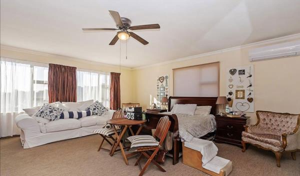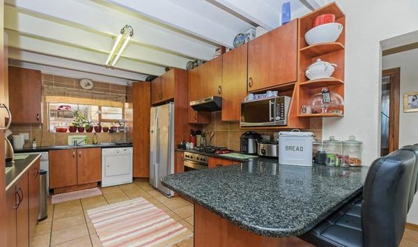 The enclosed patio, complete with a built-in braai, overlooks the pool and deck, making it an ideal spot for entertaining. The generously sized main en-suite bedroom adds a touch of luxury, while the home also boasts a double garage with additional parking and a private entrance.