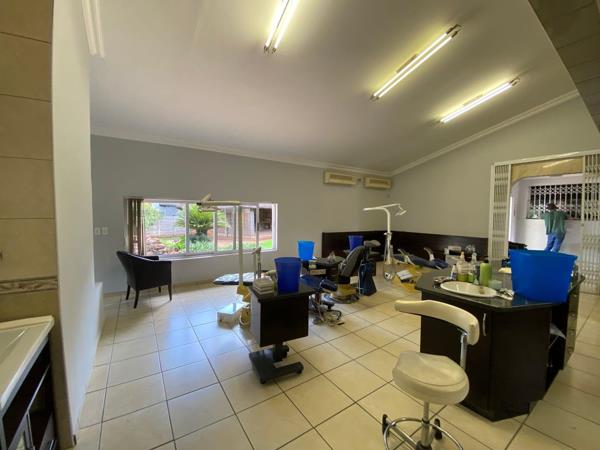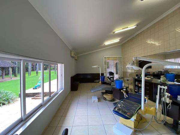 The beautifully landscaped outdoor area, featuring a swimming pool and entertainment lapa, adds further value for businesses hosting events or for potential tenant relaxation spaces.