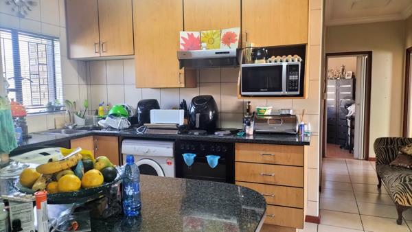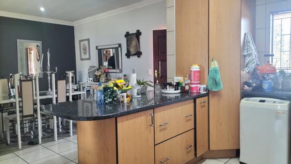 *Open-plan living with a lounge, dining area and kitchen that has granite tops and space for two appliances