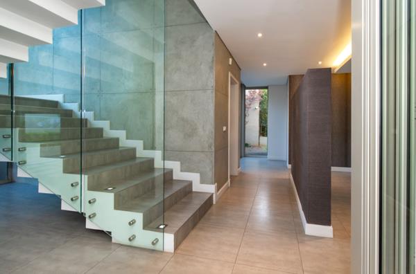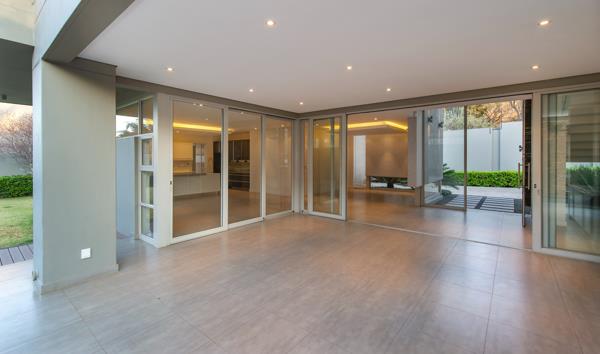 Upstairs, a double-volume glass-walled staircase leads to a central pyjama lounge/TV room and four sunlit en-suite bedrooms. The master suite is a sanctuary in its own right, boasting a luxurious walk-in dressing room and its own private atrium for added serenity.