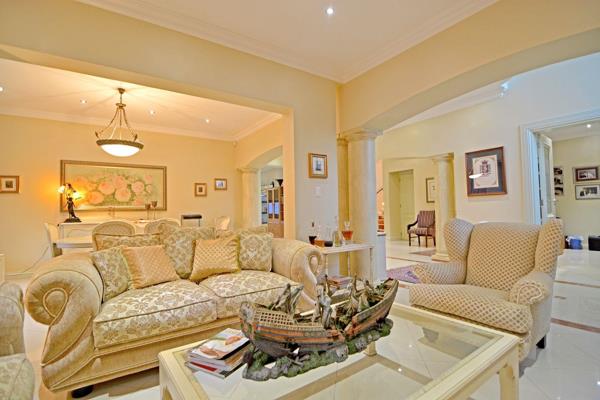 Security is complete with an intercom system, alarm system, and electric fencing, and is situated in a 24/7 gated community. Three garages, staff accommodation ample visitor parking, a central vacuum system, and piped surround sound make this home a true masterpiece.