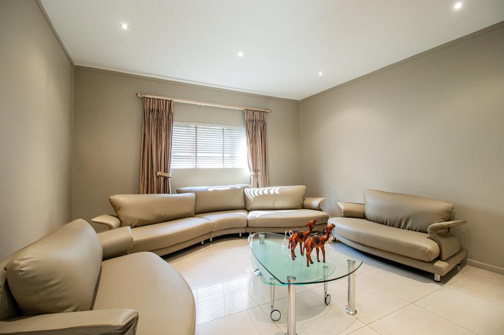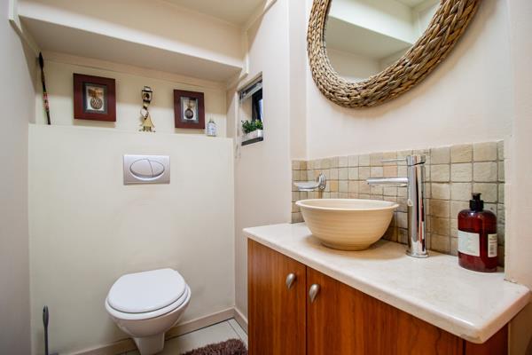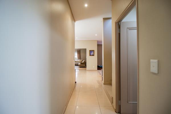 This lovely home features three comfortable bedrooms, each with its own en-suite bathroom, ensuring privacy and convenience for the whole family. There''s also a handy guest toilet and a study, great for working from home or as a quiet reading nook. You''ll appreciate the air conditioning throughout, keeping things cool during those hot South African summers. Outside, you''ll find a lovely garden with an irrigation system, and ample parking with two garages and space for five vehicles on the paved driveway.