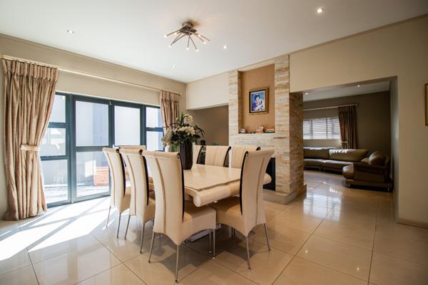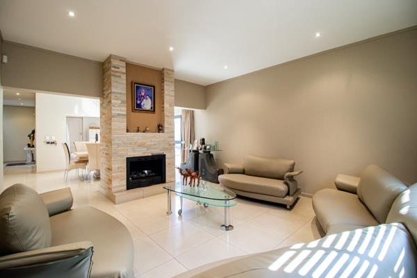Step inside through the stylish pivot entry door and you''ll find a welcoming entrance hall with a cool stacked stone accent wall. The home boasts two spacious lounges and a dining room, all featuring sleek tiled flooring and modern recessed lighting, creating a bright and airy feel. One of the lounges even has a cozy stone-clad fireplace, perfect for those cooler evenings. The open-plan layout makes entertaining a breeze, flowing seamlessly from one area to the next. The kitchen is a real highlight, with warm wooden cabinetry, a large granite-topped island with seating, a scullery, and a pantry ideal for whipping up delicious meals. Plus, there''s a dedicated braai room for all your outdoor cooking fun!
