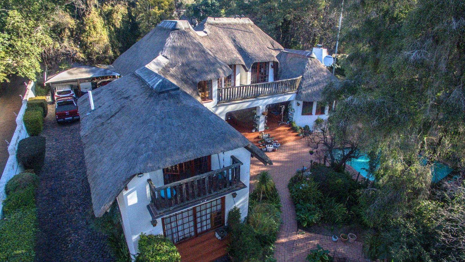 Tucked away in a leafy, tranquil setting, this charming thatch-roof property is a rare findoffering the perfect blend of warmth, space, and versatility for family living and entertaining. With three spacious bedrooms in the main house, a fully self-contained one-bedroom cottage, and a second outbuilding ideal as a home office or potential second cottage, this home adapts effortlessly to your lifestyle.