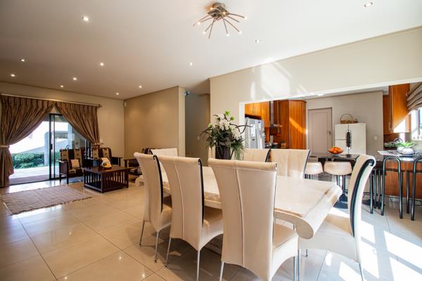 High ceilings throughout the home enhance the sense of space. The property includes a double garage with built-in cupboards and additional parking for five more vehicles. Situated in a secure complex at the bottom of a cul-de-sac, this home holds the largest footprint in the area, offering unparalleled comfort and exclusivity. Contact us today to arrange a viewing of this exceptional property.