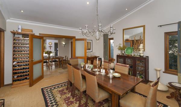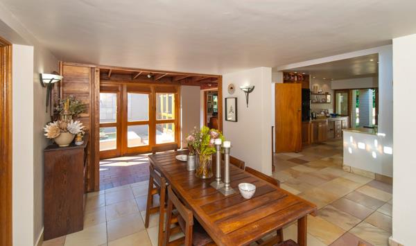 The homes entertainment patio overlooks a sparkling swimming pool and lush, established garden, creating the perfect setting for gatherings with family and friends. All four spacious bedrooms open onto the patio, offering tranquil views of the garden, and the home features two luxurious bathrooms, including a main en-suite with a double vanity, bath, and shower. Upstairs, a versatile loft space with a full bathroom can be used as a studio, guest suite, or flatlet. Additional amenities include a double automated garage and staff accommodation, ensuring convenience and comfort.