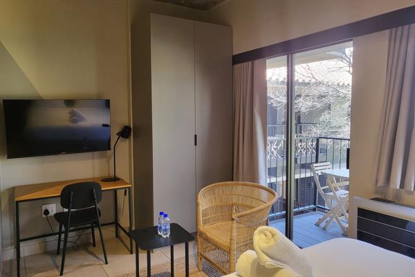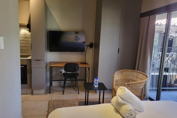 The Property Features anOpen-plan bachelor layout, sylish kitchenette, spacious bedroom with modern en-suite bathroom (shower) and Private balcony overlooking landscaped gardens.