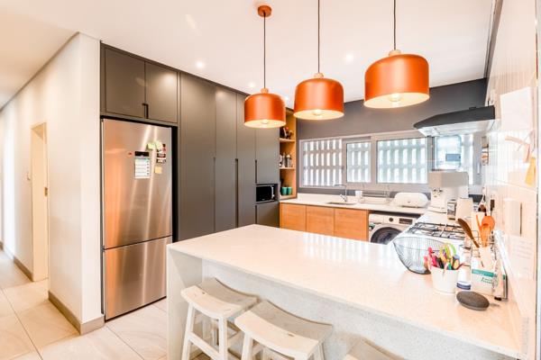 This is an opportunity to enjoy luxurious penthouse-style living in a secure and sought-after complex. Recently refurbished, this modern and sun-filled apartment offers a seamless open-plan layout featuring a spacious lounge and dining area centered around a gas fireplace. A cozy reading corner opens onto a charming Juliet balcony with views of lush landscaped gardens. Private balcony fitted with a retractable awning, ideal for relaxing outdoors