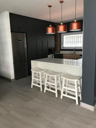 The expansive open-plan living area flows effortlessly from the sleek, modern kitchen to the dining and lounge spaces, all bathed in natural light. Glass doors lead out to a generously sized balconyideal for entertaining or simply relaxing while taking in the stunning Joburg sunsets.