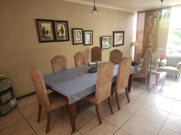 Step into comfort and convenience with this well-maintained 3-bedroom, 2.5-bathroom garden unit designed for family living. The entrance hall leads you up to the bedroom area, while the open-plan lounge and dining room flow seamlessly onto a covered patio and private garden through modern stacking doors. The kitchen is well-equipped with granite countertops, ample cupboard space, a pantry cupboard, an eye-level oven, a glass hob, and room for your appliances.