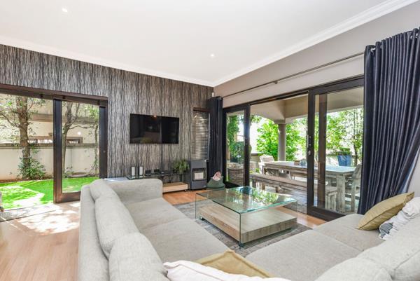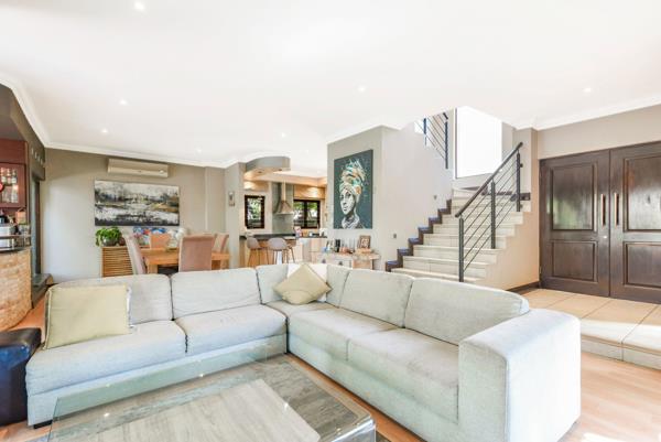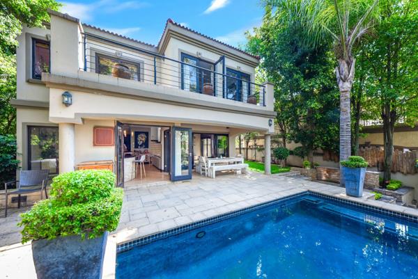 A HOME TO GLADDEN THE HEART. This stylish home is ideal for entertaining and relaxed living for the modern family seeking a secure lifestyle. Designed for comfort and functionality this home offers easy flow from the kitchen to the spacious reception rooms and feature built-in bar to entertainers'' patio, dramatic infinity flow pool, wooden deck, fire-pit and lovely treed garden. 3 bedrooms upstairs with balcony and 2 full bathrooms. Double auto garage with direct access into the home.