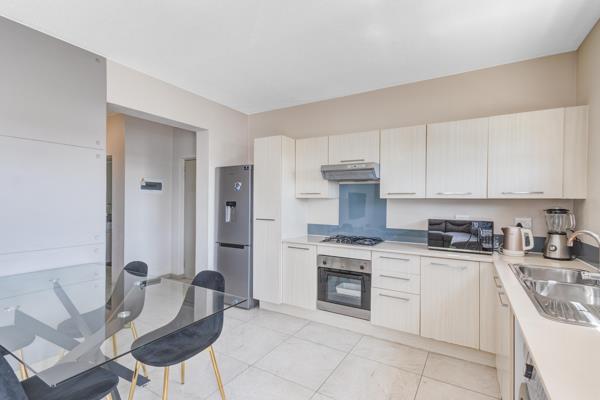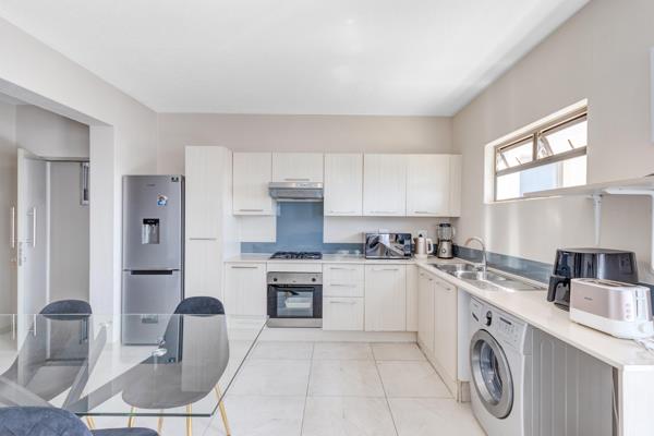 This spacious garden unit offers a perfect blend of comfort and convenience, featuring a bright entrance that welcomes you with natural light. The open-plan lounge, with glass doors leading to the garden, creates a seamless connection between indoor and outdoor living. The kitchen has ample counter space and a breakfast bar, making meal preparation and casual dining a breeze.