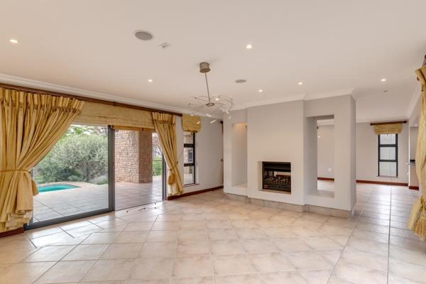 The living areas open up to an expansive patio with a built-in braai, ideal for alfresco dining or lounging, all while overlooking the sparkling pool and beautifully manicured gardenperfect for family enjoyment and entertaining.
