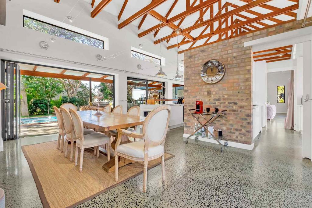 Inviting entrance hall flows onto a open plan family lounge and dining area which spills onto a delightful covered patio, overlooking the tree-lined private garden and sparkling swimming pool - fabulous for entertaining all year round. The kitchen is a great size has Caesarstone countertops, prep bowl, breakfast bar, double door fridge space, separate scullery that can accommodate all your appliances, plus ample cupboard space. Guest cloakroom completes the downstairs floor plan.