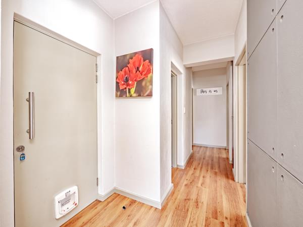 The main bedroom consists of built-in cupboards and an en suite full bathroom with double basins. The other two modern bedrooms also have built in cupboards they share a modern bathroom that has bath.
