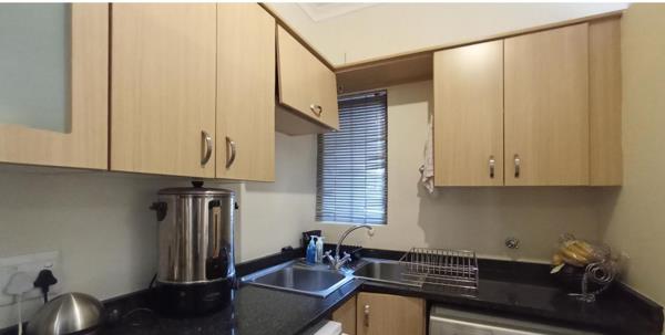 The spacious main bedroom offers built-in cupboards and a luxurious en-suite bathroom complete with a large bathtub and a shower perfect for unwinding after a long day. A private door from the main bedroom opens directly into the lush communal gardens. The second bedroom is generously sized, with a conveniently located second bathroom that includes a shower.