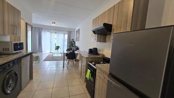 The open-plan kitchen is a true chefs delight complete with elegant granite countertops, a gas hob, and ample space for your appliances. The kitchen flows seamlessly into a bright and airy living area, enhanced by high ceilings and natural light. Sliding doors open onto a private patio the perfect spot to enjoy your morning coffee or unwind with friends after a long day.