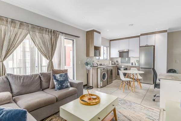 This beautifully presented 1-bedroom, 1-bathroom apartment offers contemporary living in a bright and inviting space. The open-plan lounge and dining area is thoughtfully designed for comfort and functionality, featuring neutral tones, large windows, and soft natural light that create a warm, airy atmosphere. The lounge flows seamlessly onto a private balcony, ideal for morning coffee, fresh air, or relaxed entertaining.