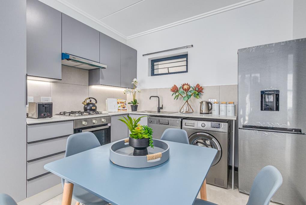 Choose your vibe: garden unit or first-floor with balconyeach crafted with high-end finishes, quartz tops, tiled floors, high ceilings, and large windows. Energy-efficient features include gas hobs, electric oven, integrated water heating, and prepaid electricity. Fully equipped with fridge, washing machine, and dishwasher in metallic grey.