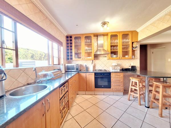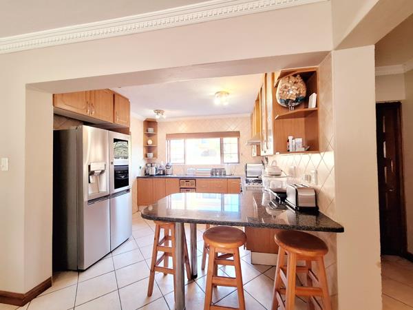 The property''s living areas are designed for entertainment and relaxation, with two living rooms, one of which has a sliding door to the patio, and an open-plan dining room that flows seamlessly into the kitchen. The kitchen is a highlight, equipped with ample cupboards, a gas stove, and space for a double-door fridge. An adjacent scullery offers additional storage and connections for three appliances, with a door leading outside for easy outdoor access.