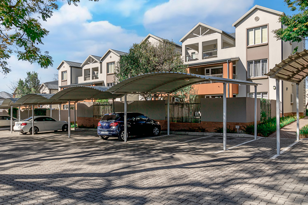 The unit also includes two covered parking bays, providing secure parking for vehicles.