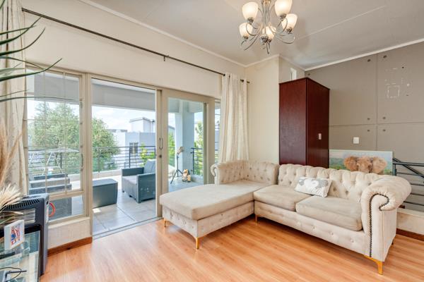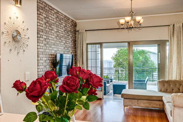 Outdoor living is facilitated by a private balcony, accessible directly from the living area, providing an ideal space for relaxation. The residence includes two dedicated parking bays, offering convenience and security. As part of a security estate, residents benefit from enhanced peace of mind and a well-maintained communal environment.