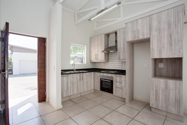 This gorgeous home welcomes you into the open plan kitchen, dining room and lounge. The home also comprises of a private mini patio and manageable well kept garden. The kitchen includes a built-in oven and gas stove with extractor. Modern cupboards provide ample storage space with neutral tones, and granite surfaces. This unit also comprises of a single electric garage .