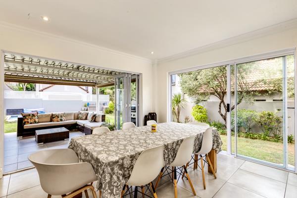Sustainability is a key feature, with eco-friendly innovations such as an 11kVA inverter system powered by 12 solar panels and four batteries (10kVA capacity). a 10,000L JoJo tank that collects storm water for the garden and pool and outside shower. The lush green garden benefits from an irrigation system. The home also benefits from three geysers, including one solar-powered, and a water tank, all of which contribute to significant energy savings and reduced utility costs. The house has been newly painted.