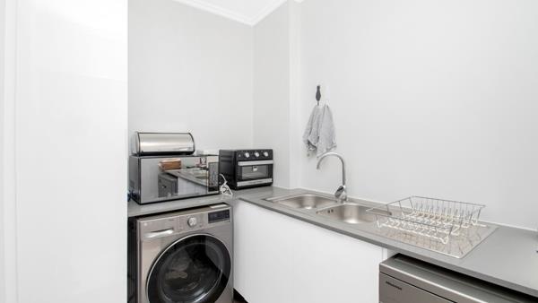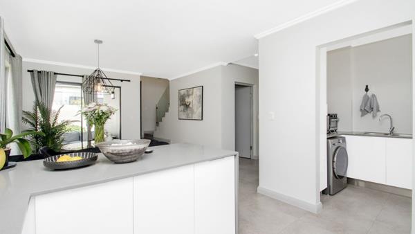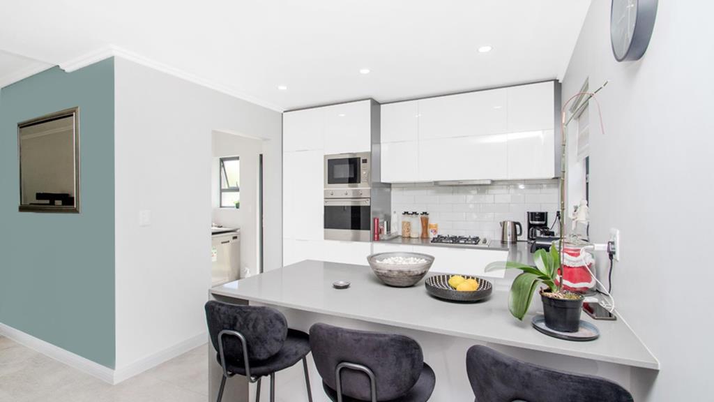 Downstairs, youll find a spacious double garage and a small yet inviting garden. The open-plan living area includes a cozy lounge, ideal for relaxing, and a stylish kitchen featuring modern finishes, an island, and a separate scullery with space for three under-counter appliances. The outdoor area provides a great setting for entertaining, with a built-in braai and enough space for hosting family and friends in a relaxed environment.