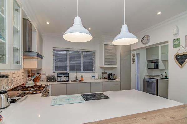 The newly renovated kitchen features Caesarstone countertops, a gas hob, electric oven, breakfast bar, and plenty of storage, with a convenient scullery. The air-conditioned living spaces offer year-round comfort, while a cozy gas fireplace adds warmth in the colder months. Aluminum stacking doors open to an outdoor entertaining area with a covered louvre patio, lush garden, solar-heated pool, outdoor shower, and fire pitperfect for both relaxation and hosting.