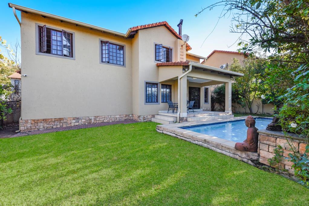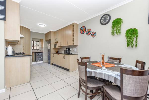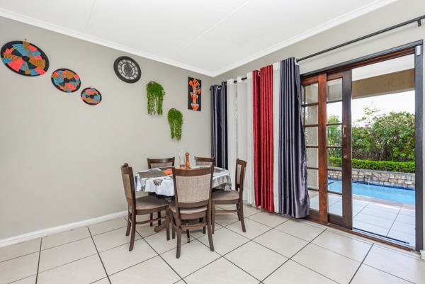 Urgent Seller. Located in a tranquil, tree-lined estate, this double-storey residence offers effortless living. The entrance leads to an open-plan lounge and dining area with a wood-burning fireplace, extending to a covered patio overlooking a swimming pool and landscaped garden with fruit trees.